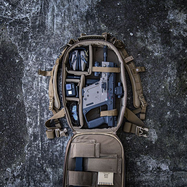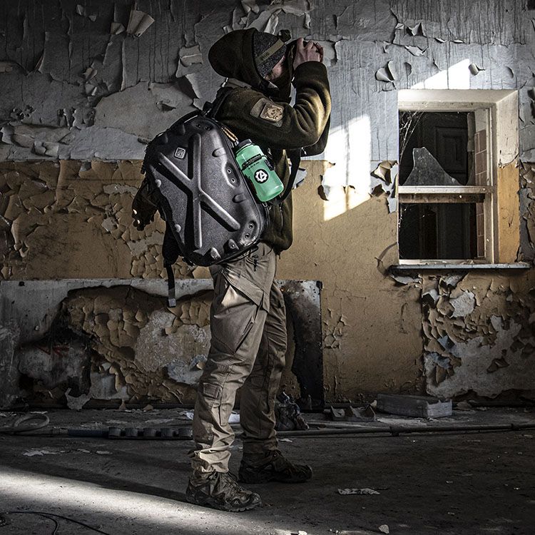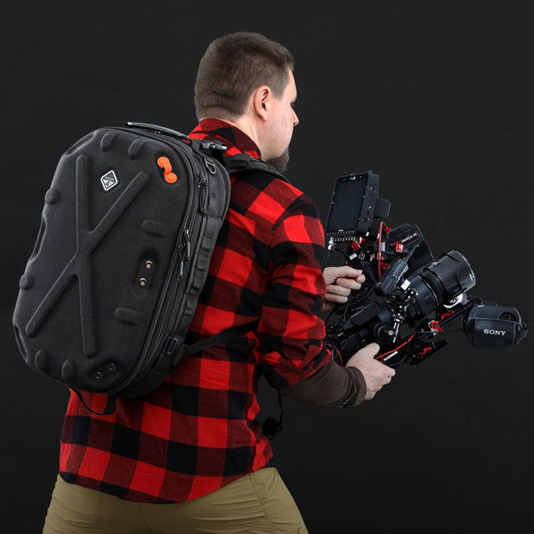 This new breed of rugged pack protects optics, electronics and even weapons, by marrying light molded-foam shells and 360 padding for demanding users like press, military, vloggers, surveyors, investigators, etc. The striking aesthetics project an image of the owner at the leading edge of technology. The compartments will fit a laptop, tablet, pro camera systems, drones like Mavic Pro, accessories like card-readers, and personal items like snacks, rain shell, or first aid kits that are often not allotted on most packs. The molded back-pad is abrasion resistant while conforming to the spine and ventilating sweat. The top shell has 6 spots for our patented Hardpoint® parts allowing optional attachment of loops, lights, bungee systems, molle panels, etc. This pack is also very suitable for motorcycle use as it won't flap in the wind. Military modular webbing (MOLLE) is provided throughout on the sides, straps, and the interior is lined with fuzzy panels to allow expansion with pouches, hook-backing i.d. patches, etc. YKK® Zippers, genuine Cordura® 1000D nylon (Grayman models are Polyester), and reinforcing stitch patterns insure lasting quality.