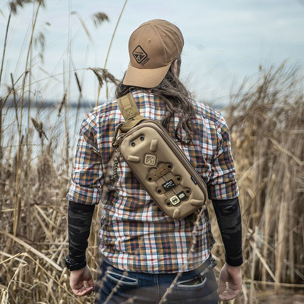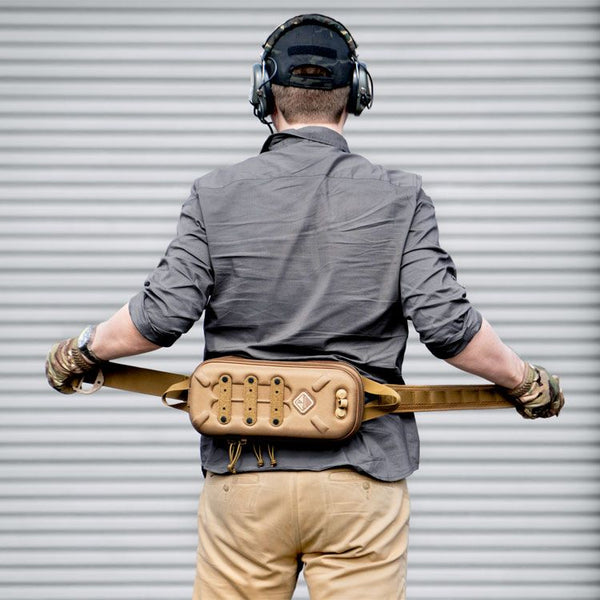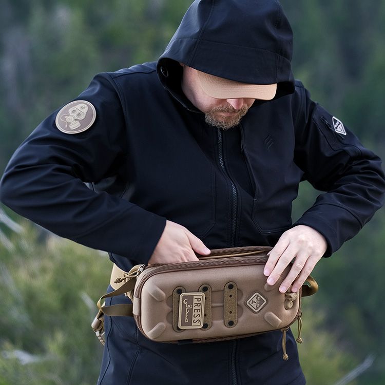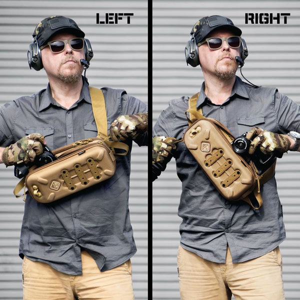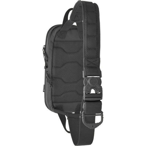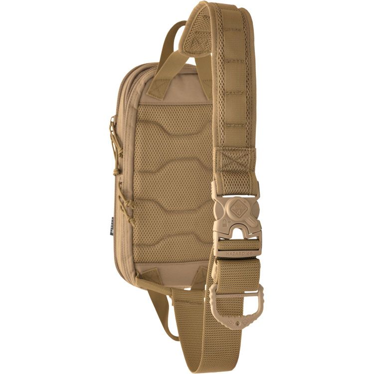 Ideal for urban travel/photography or commuting, this is the smallest Hazard 4® shell sling-pack. It incorporates our patent-pending auto-shift ambidextrous shoulder strap. The bottom strap connection slides automatically right or left to suit user preference with no set-up. All zippers and pockets are designed for ideal access from either side. The pack-length is perfect for horizontal waist wear. Light aerated padding is quilted by military modular webbing for adding pouches/tools, etc. to the strap in either wear style. Top/bottom handles aid in pulling around or hanging up. Our unique molded shell protects the contents and has one patented Hard-Point® connector pad for attaching optional loops, lights, etc. The shell also hosts the patented hard-molle military modular webbing for mounting extra pouches, tools, etc., rubber hook-backing patches/i.d. windows and ¼ 20” screw gear. The 3 pack divisions are designed for a small camera like the Sony RX100, batteries, mini tripod, memory cards, power banks, cables, wallet, phone, pens, etc. Being so camera friendly, it comes standard with the patented Hazard 4® photo-d-ring, allowing you to attach any camera or q.d. to the 2” strap tip like a retainer leash. Retention is guaranteed by our patented roto-locking buckle. See the full list of features to appreciate this rugged, state of the art pack.